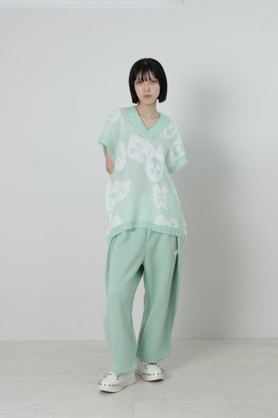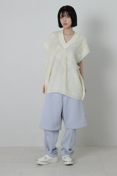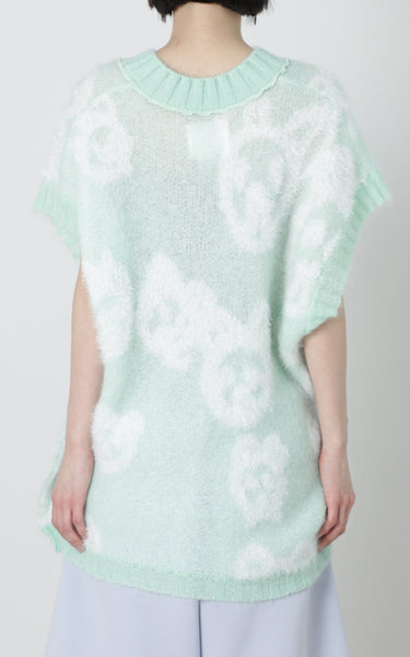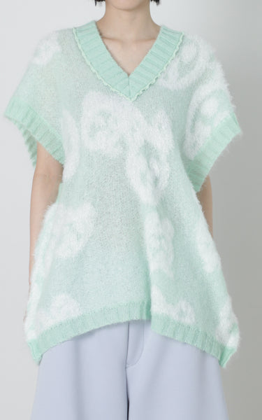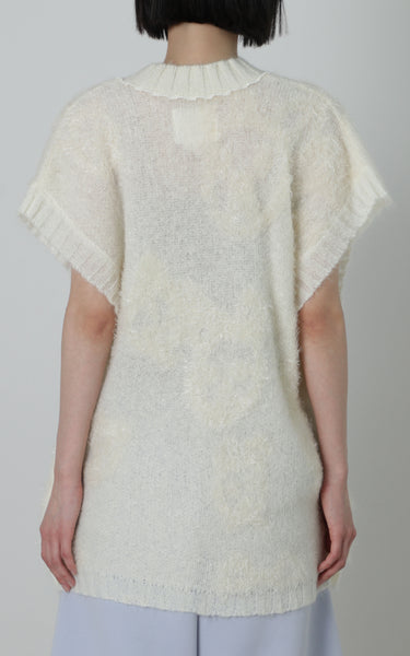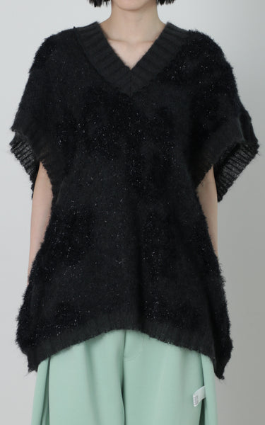 キラキラしたフィルム糸を使用したジャガード編みのベストになります。