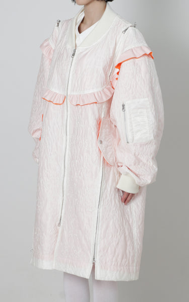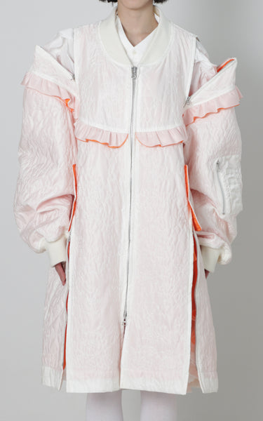 また前後身頃にはファスナーで開閉できる様なディテールで完全に袖側を取り外す事が出来ます。取り外した場合は、身頃側をベストの様に使用頂く事が出来ます。