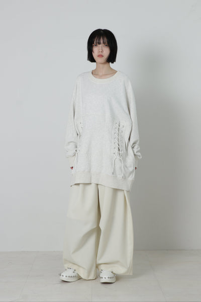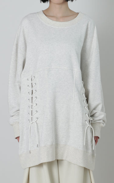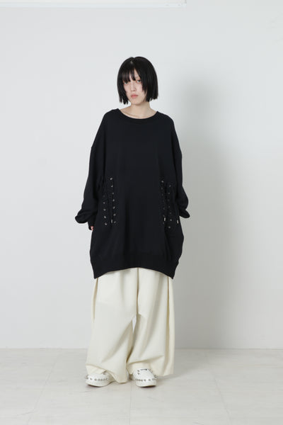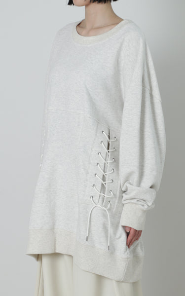 ウエスト部分にコルセットのディテールを施したスウェットになります。