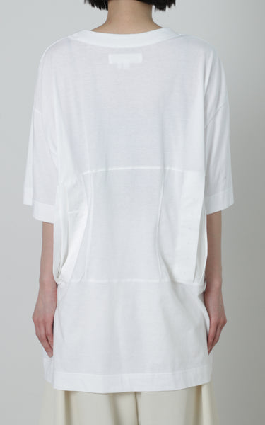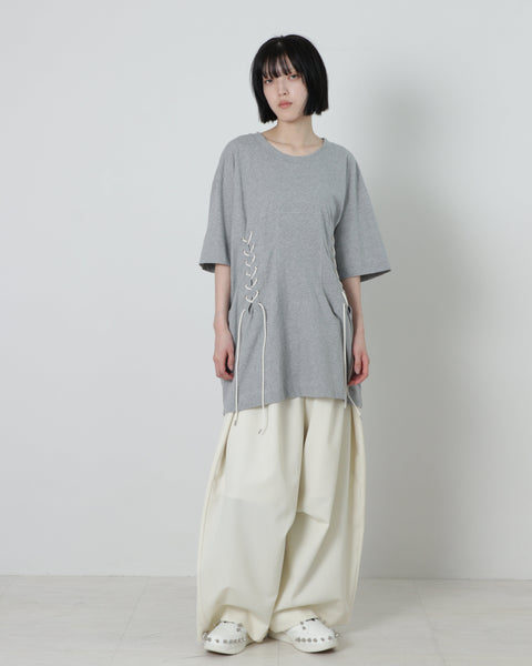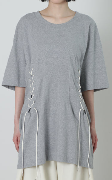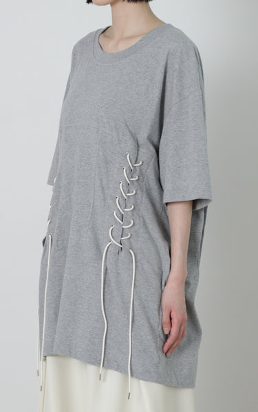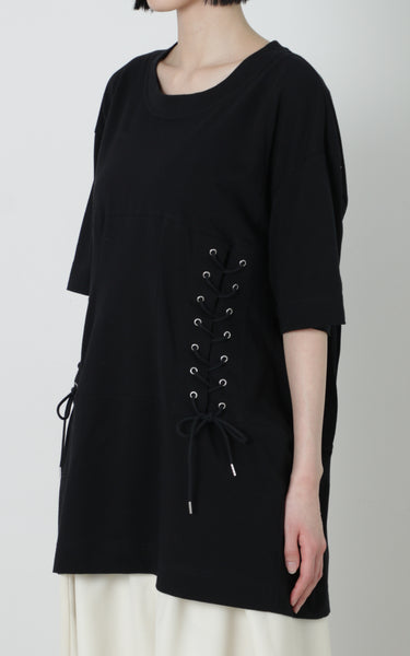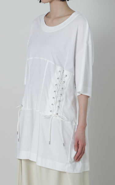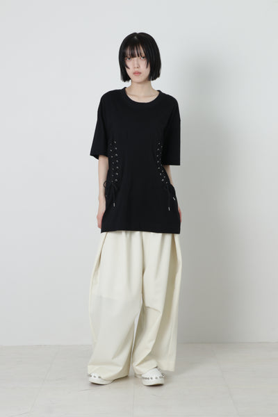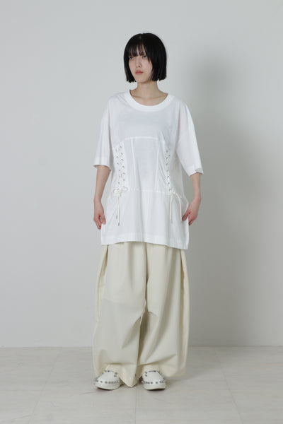 ウエスト部分にコルセットのディテールを施したTシャツになります。