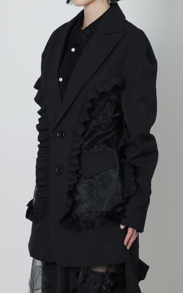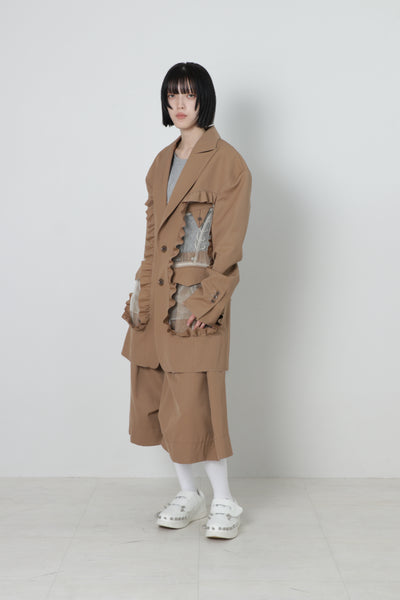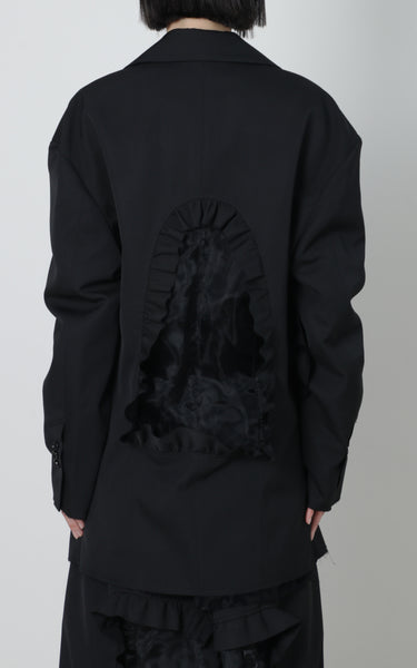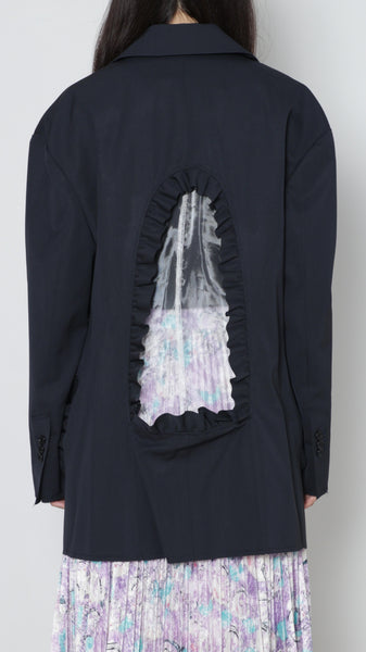 前後にくり抜きとフリルを施しています。